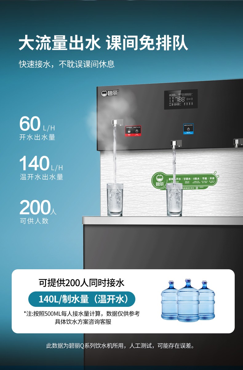 • 供 水 量:開(kāi)水60升/時(shí),溫開(kāi)水140升/時(shí)
